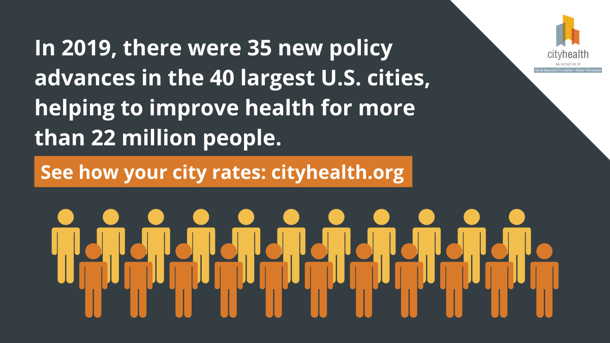 On Wednesday, November 13, CityHealth will release its policy ratings of the nation’s 40 largest cities. The ratings are determined by an evaluation of nine health-related policies that help residents and communities thrive.